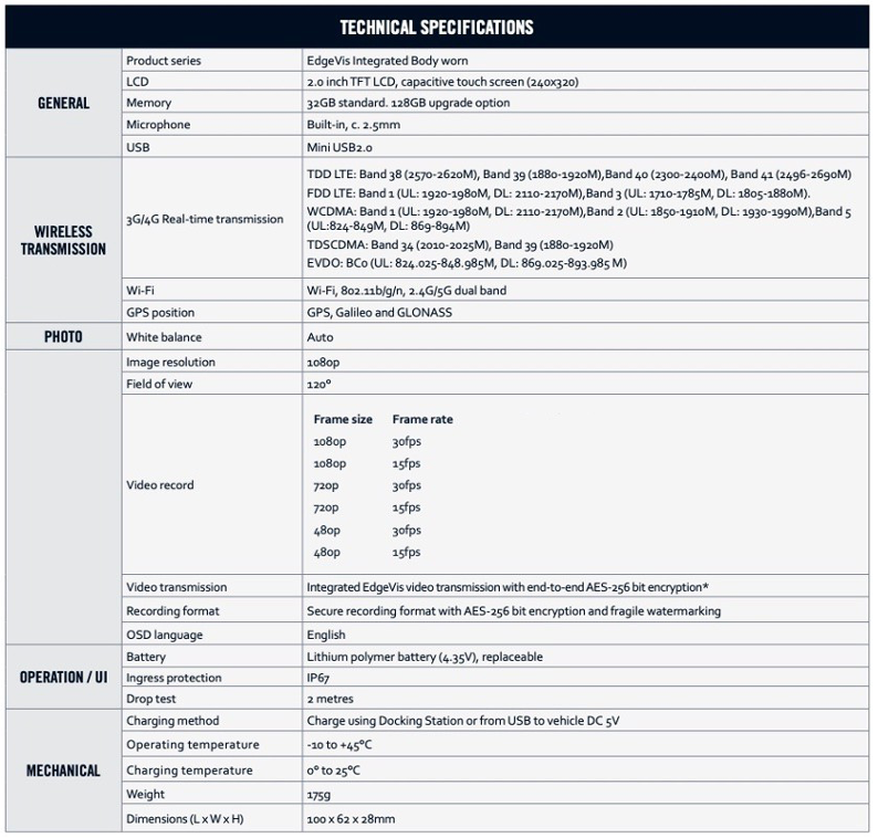 Used by Police & Military in the UK. EdgeVis Body Worn offers real-time situational awareness with secure, live streaming from anywhere, anytime. With the world’s leading platform for video distribution over limited bandwidth networks, the customer controls the data and can view in any VMS/C2 (including Milestone), or on an EdgeVis-enabled device i.e. iOS or Android phone/tablet.